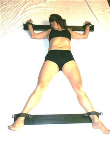 strutturata con agganci per caviglie, palo verticale , ferma polsi